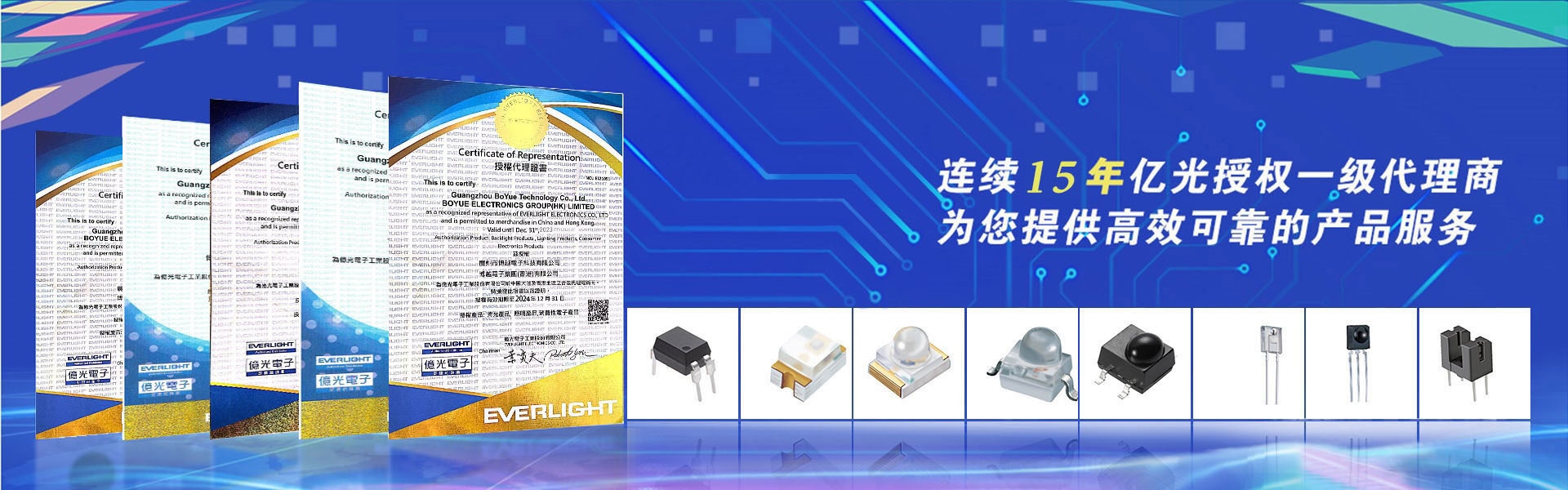 廣州市博越電子科技有限公司廣州市博越電子科技有限公司是一家以電子科技為核心,億光一級代理,為國內廣大用戶提供億光紅外線、ITR接收頭、槽型光電開關、照明燈珠、紅外線光電產品、光感IC、光耦、可見光燈珠等電子元器件產品的科技型服務企業,公司總部在中國的南大門-廣州南沙自貿區,在北京、上海、武漢設立辦事機構,并以此為中心業務范圍輻射全國。博越電子是全球LED品牌企業-臺灣億光電子(EVERLIGHT)的一級代理,是億光電子拓展中國市場而建立的戰(zhàn)略合作伙伴,是中國專業的合作商之一。